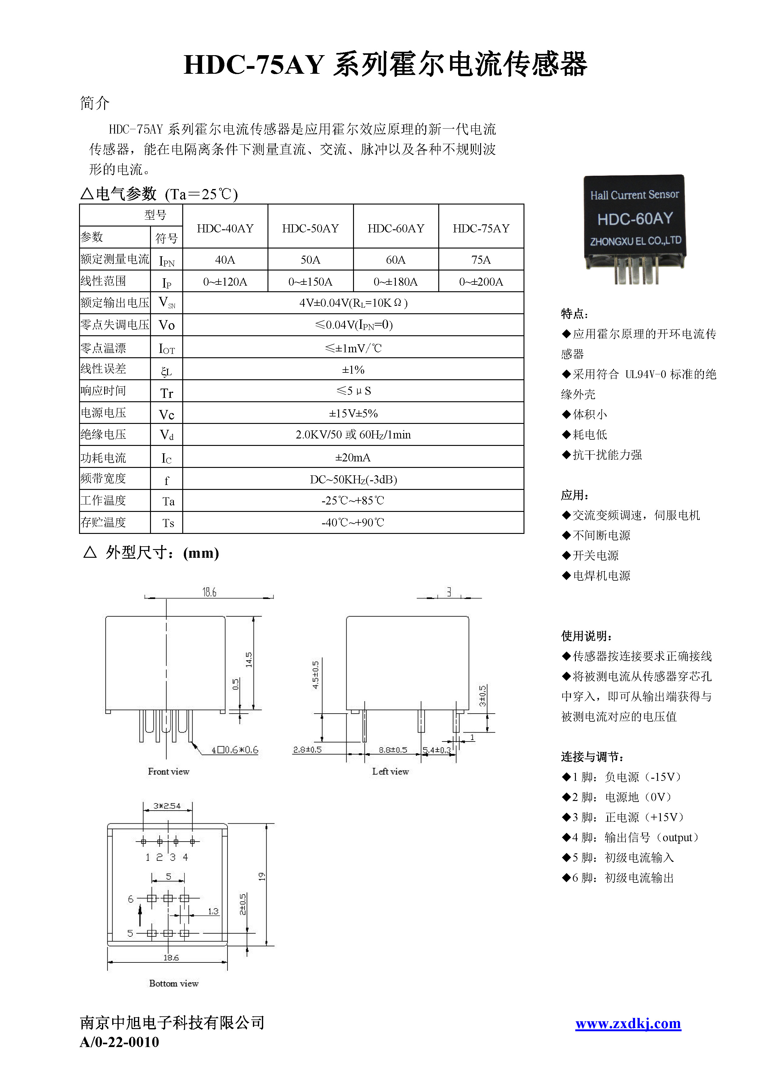 HDC-60AY系列霍爾電流傳感器是應用霍爾效應原理的新一代電流傳感器,能在電隔離條件下測量直流、交流、脈沖以及各種不規(guī)則波形的電流。